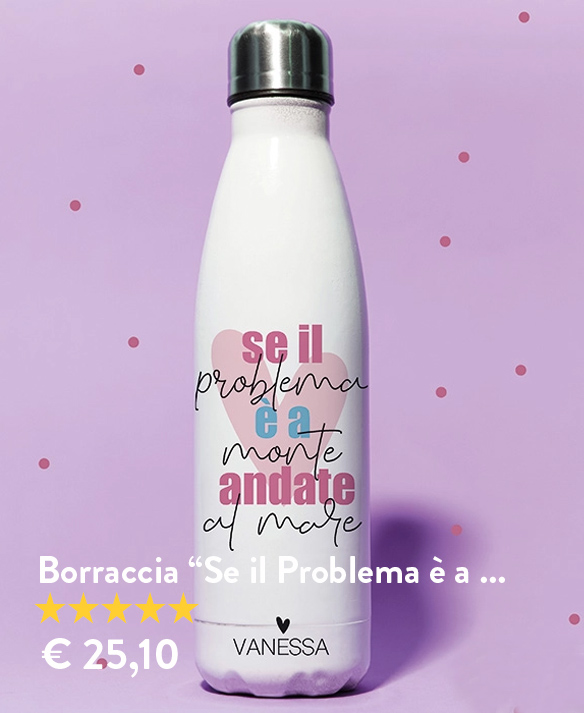Scegli una borraccia personalizzata con il tuo nome o quello della persona a cui la regalerai: sarà un regalo davvero originale e 100% unico! Belle ed utili, le borracce, in acciaio, vetro, plastica che sia, sono ormai un must-have sulle nostre scrivanie o dentro lo zaino. Perché accontentarsi di una borraccia normale? Personalizza subito la tua senza minimi d'ordine