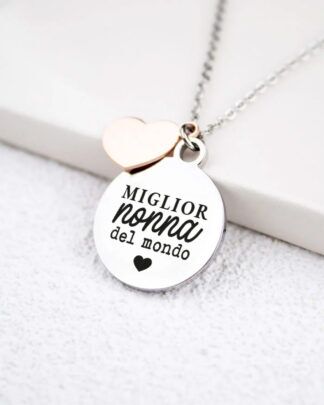 Collana “Miglior Nonna del Mondo” con Ciondolo e Cuore Rosè – Idea Regalo per la Nonna, Festa dei Nonni