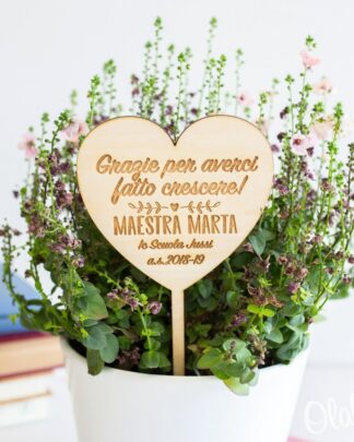 Decorazione per Vaso in Legno Personalizzabile con Dedica – Regalo Maestra