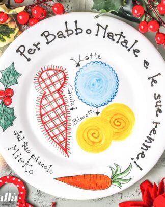 Piatto in Ceramica Dipinto a Mano per Aspettare Babbo Natale e le Renne Latte Biscotti Carota