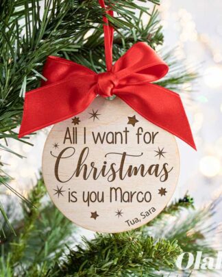 Decorazione di Legno Personalizzabile da Appendere all Albero di Natale ” All I Want for Christmas is You”