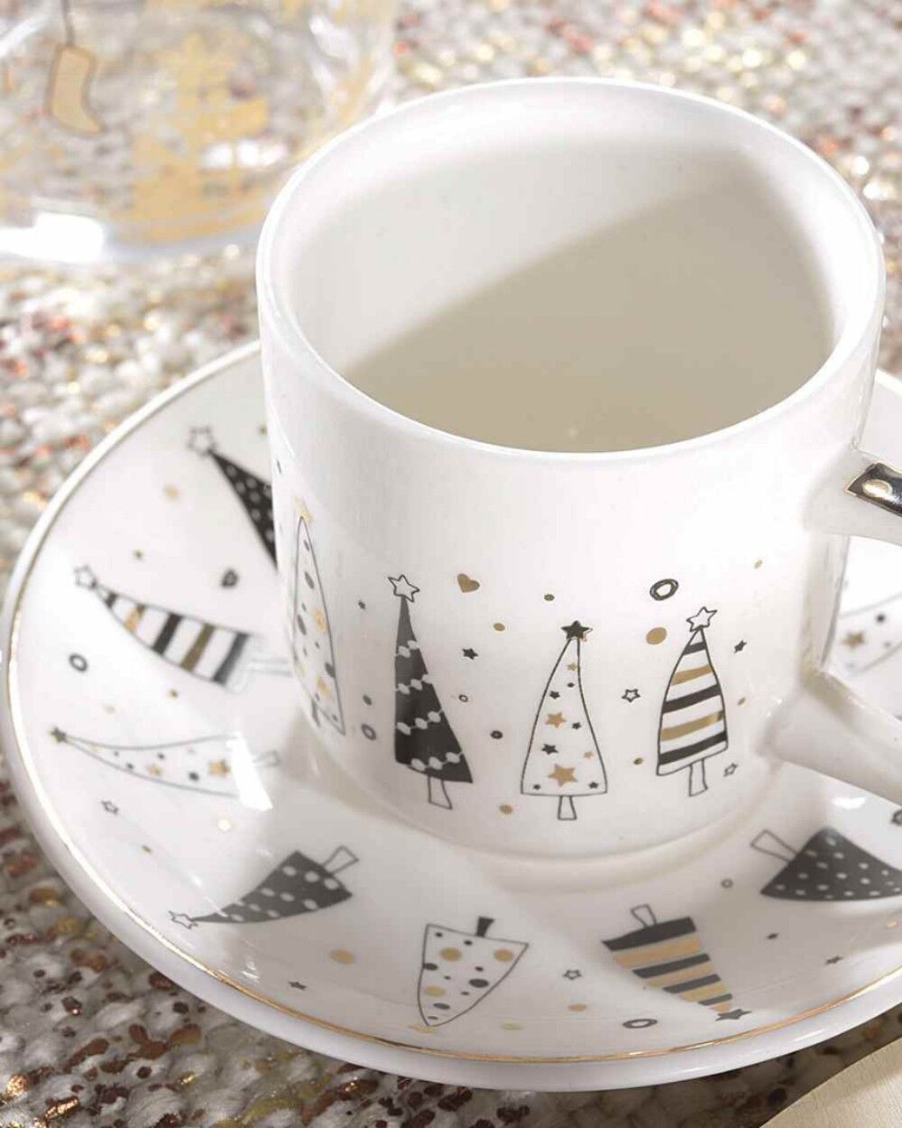 Un’idea regalo perfetta per gli amanti del caffè e dell’atmosfera natalizia! Questo elegante set da 2 tazzine con piattino è decorato con delicati motivi natalizi nei toni del bianco, del nero e dell’oro, che donano un tocco moderno e raffinato alla tavola delle feste.