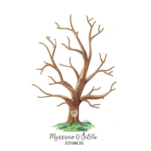 Meraviglioso albero guest book da personalizzare con i vostri nomi, la data del matrimonio o una breve frase. Sul tronco dell’albero vengono anche “incise” le vostre iniziali, ed un cuore, incrociate da una freccia. Un modo originale per fare in modo che le firme degli invitati al vostro matrimonio stiano con voi per sempre.