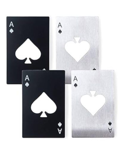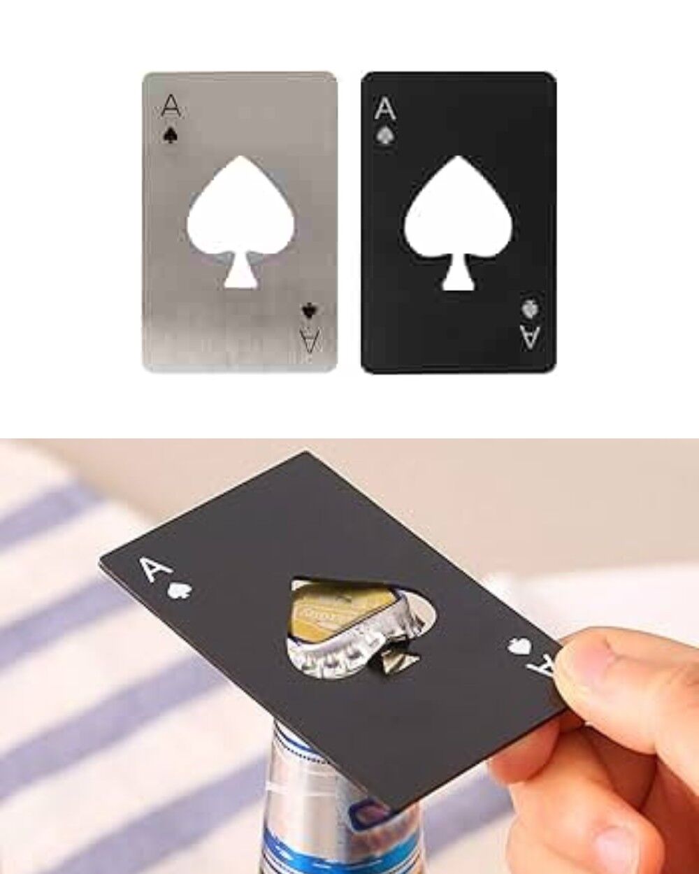Stupisci i tuoi amici con un apribottiglie fuori dal comune! Questo originale apribottiglie in metallo è realizzato a forma di asso di picche, con un design elegante e compatto che ricorda una vera carta da gioco. Disponibile in due varianti: nero opaco o metallo satinato.