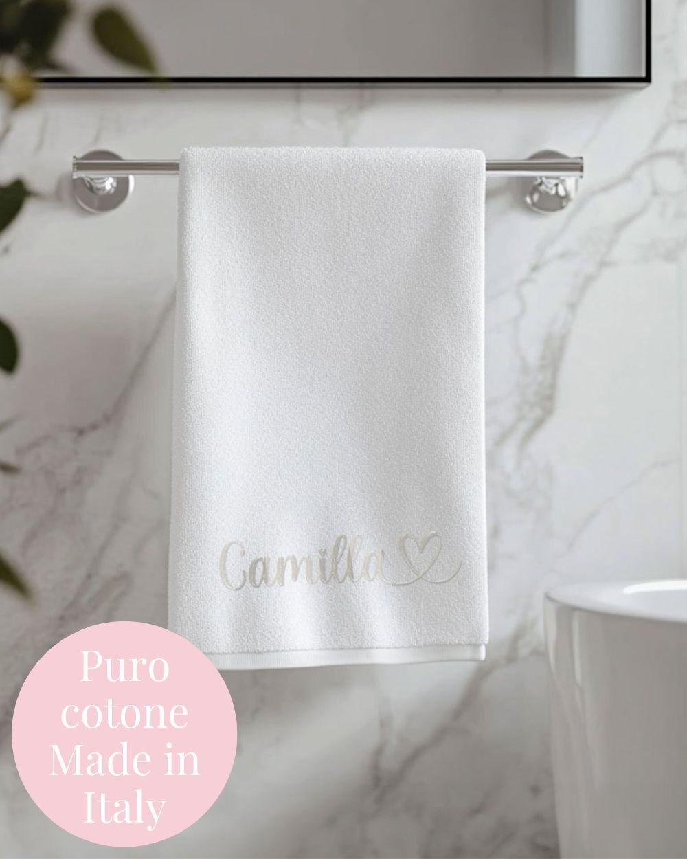 – Personalizzazione Elegante: il ricamo del nome e del cuore aggiunge un tocco personale che trasforma questo asciugamano in un regalo su misura, perfetto per occasioni speciali come matrimoni, anniversari, o per fare un pensiero affettuoso a una persona cara. È anche un’idea meravigliosa per la famiglia, per aggiungere un tocco di stile e unicità ai propri asciugamani di casa