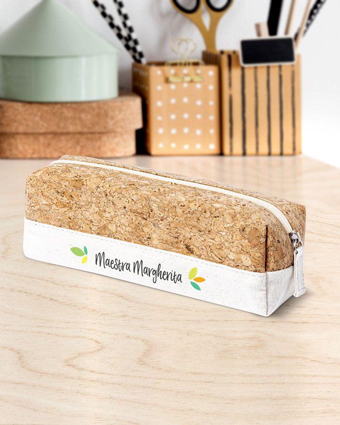 Astuccio Portapenne Personalizzato in Sughero e Cotone, Idea Regalo per la Maestra.