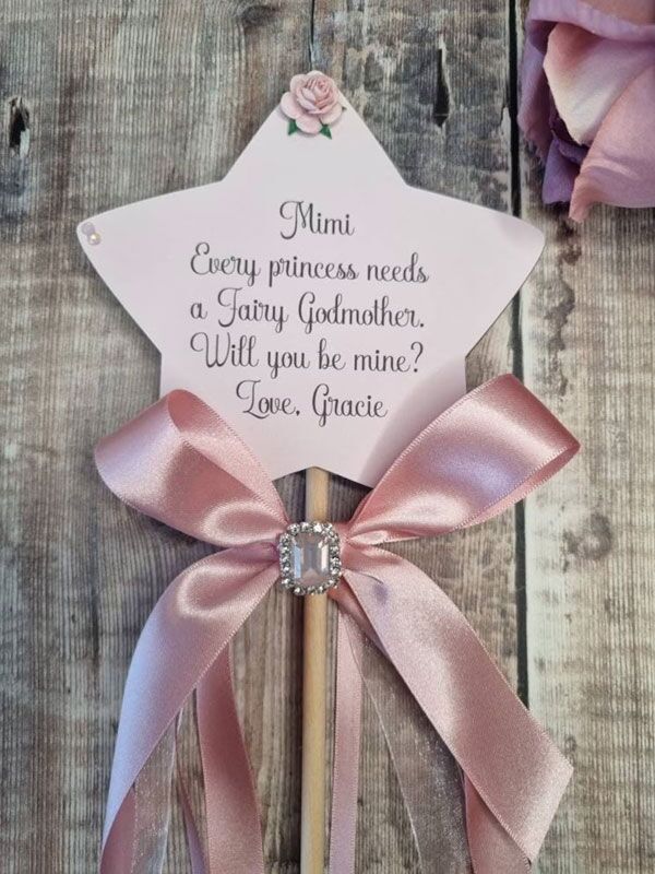 - PERSONALIZZATA: la bacchetta magica può essere personalizzata con una dedica personale su un supporto a forma di stella in legno, decorata con un elegante nastro in raso rosa.