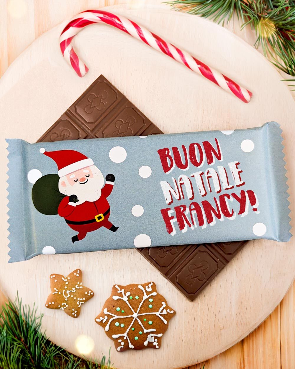 Queste barrette di cioccolato con etichetta personalizzata sono una simpaticissima idea regalo da fare sia per Natale che per ogni altra occasione in cui abbiate necessità di fare un piccolo presente personalizzato, ideali ad esempio come piccoli presenti per dipendenti e fornitori.