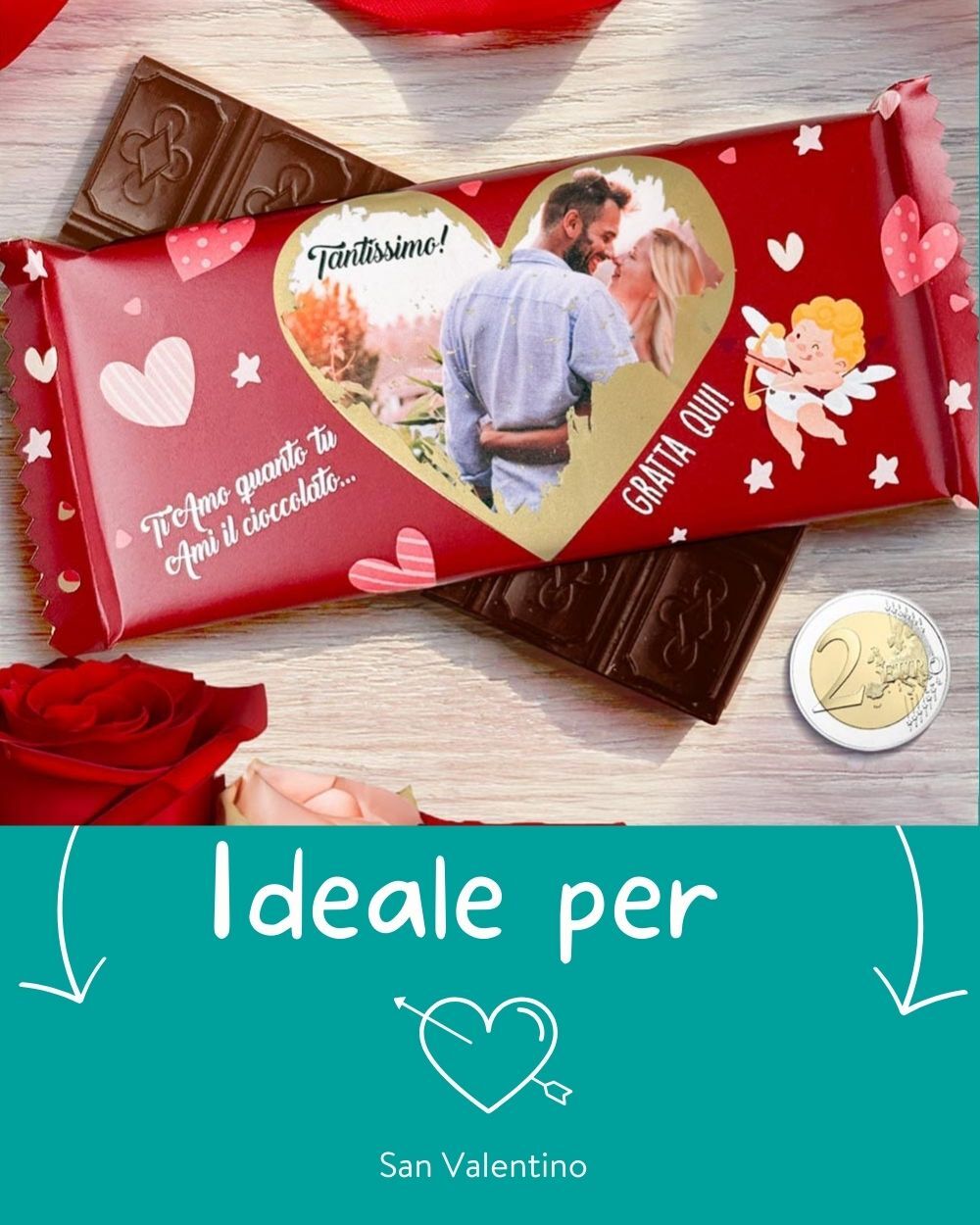 - Un regalo perfetto per San Valentino: questa barretta di cioccolata unisce dolcezza e romanticismo, rendendola il dono ideale per celebrare la festa degli innamorati.