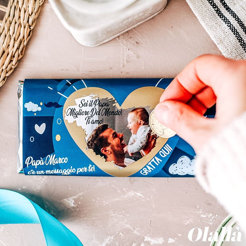 Queste barrette di cioccolato con etichetta personalizzata sono una simpaticissima idea regalo da fare sia per Natale che per ogni altra occasione in cui abbiate necessità di fare un piccolo presente personalizzato, ideali ad esempio come piccoli presenti per dipendenti e fornitori.