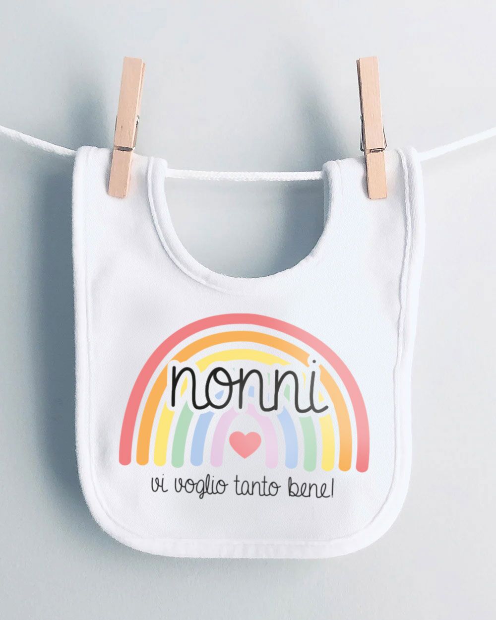 Bavaglino per Bimbi con Arcobaleno e Cuoricino – Il Regalo Personalizzato Perfetto per la Nonna e il Nonno nella Festa dei Nonni