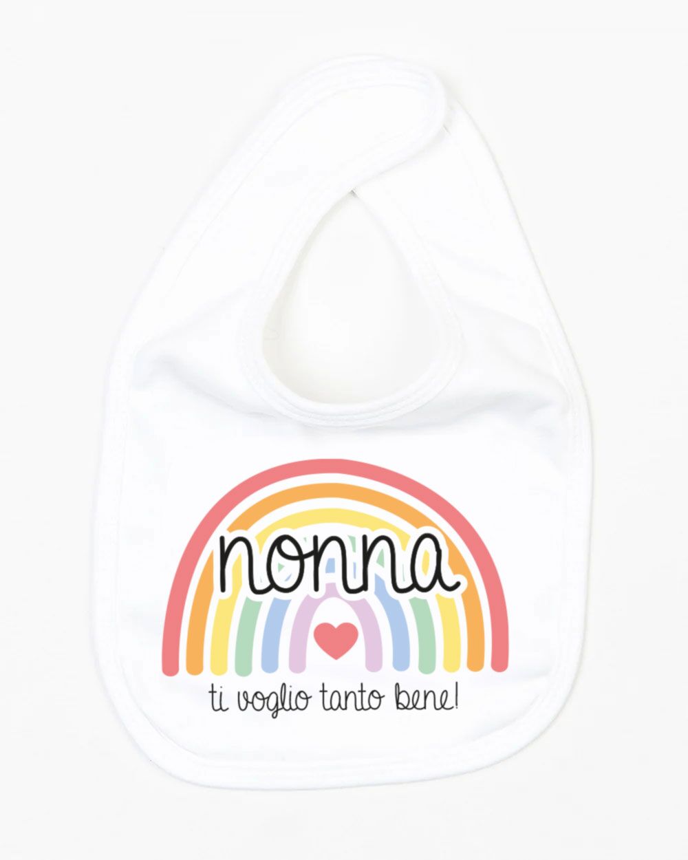 Siamo certi che non esista nulla di più dolce del momento in cui un nonno o una nonna coccola il proprio nipotino. E per rendere questi momenti ancora più speciali, abbiamo creato il bavaglino per bimbi con arcobaleno e cuoricino. Non è solo un bavaglino, ma un simbolo d’amore, personalizzabile con nome e dedica. È il regalo perfetto per la Festa dei Nonni, rendendo ogni pasto un’occasione unica per celebrare il legame tra generazioni.