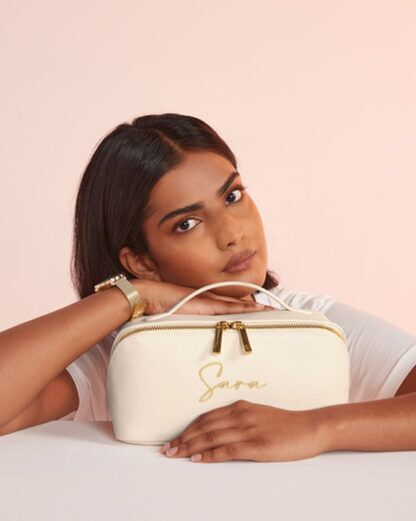 Quello che rende questa beauty case davvero unica è la possibilità di personalizzarla con il tuo nome stampato o ricamato in oro. Un piccolo tocco di lusso che la trasforma da semplice accessorio a un pezzo unico, un regalo su misura che farà sentire chi lo riceve davvero speciale.
