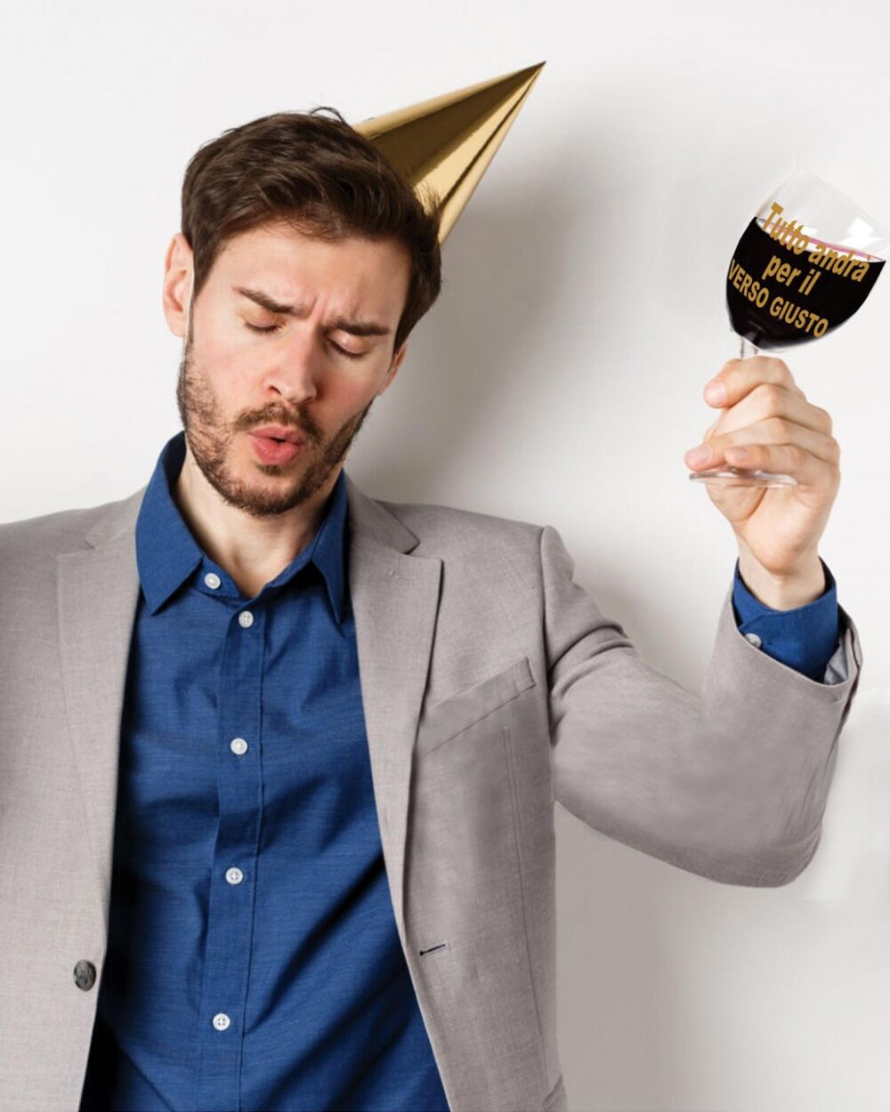 Spiritoso bicchiere storto con scritta “tutto andrà per il verso giusto”, perfetto per dare il via a dei festeggiamenti di laurea davvero anti-convenzionali! Il fatidico giorno della laurea, tra libri ed esami impossibili, è finalmente arrivato e il nostro neo-dottore o dottoressa si merita un brindisi davvero speciale per coronare questa giornata con una bevuta fuori dagli schemi!