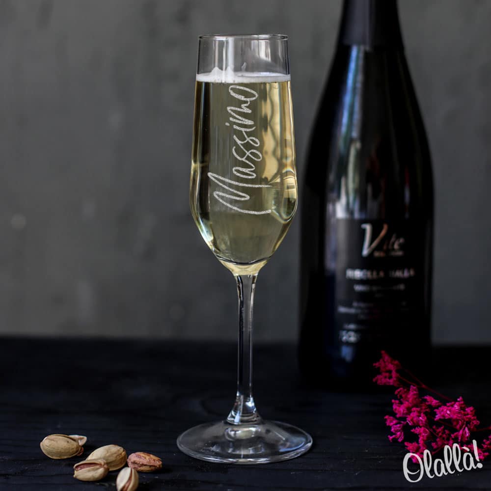 Prestigioso flute da prosecco o champagne in vetro sonoro ultraresistente inciso con il nome e la tua dedica. Un’idea strepitosa come regalo per lei. Sia l’incisione che i bicchieri sono molto resistenti e non subiranno danneggiamenti nemmeno se lavati in lavastoviglie.