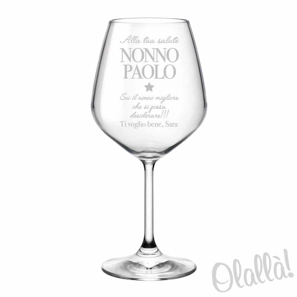 Meraviglioso calice ideale per assaporare vini pregiati incisi con motivo o dedica personalizzata. 100% Alta Qualità Made in Italy incisi a laser in maniera indelebile.