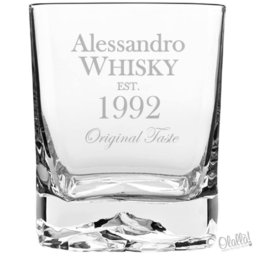 Prestigiosi bicchieri da whiskey in vetro incisi con motivo o dedica personalizzata. 100% Alta Qualità Made in Italy.
