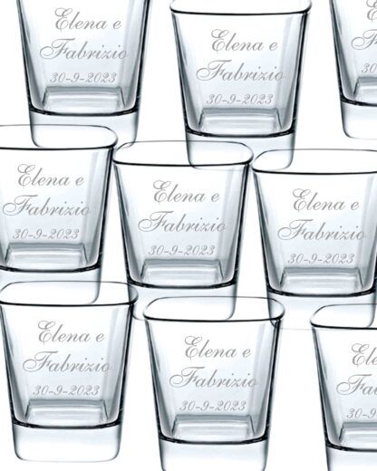 - Ricordo di un Evento Importante: Incisi con i nomi degli sposi e la data del matrimonio in un elegante corsivo, questi bicchieri diventano un tesoro personale che ricorda agli ospiti il vostro giorno indimenticabile.