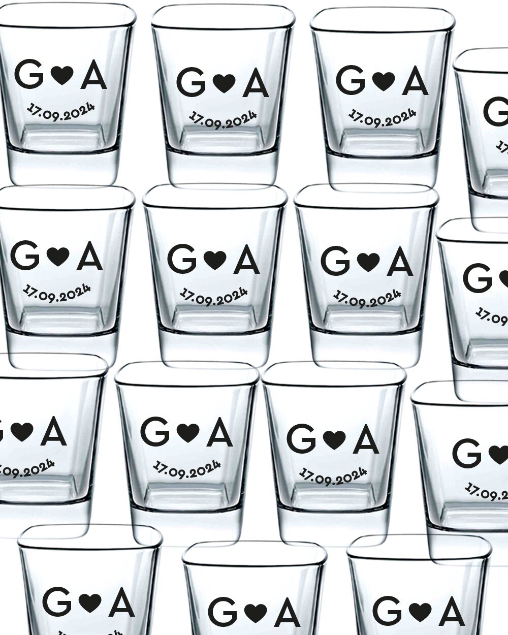Bicchieri da Shot Personalizzati con Iniziale degli Sposi e Data – Un Ricordo Elegante per il Tuo Matrimonio!