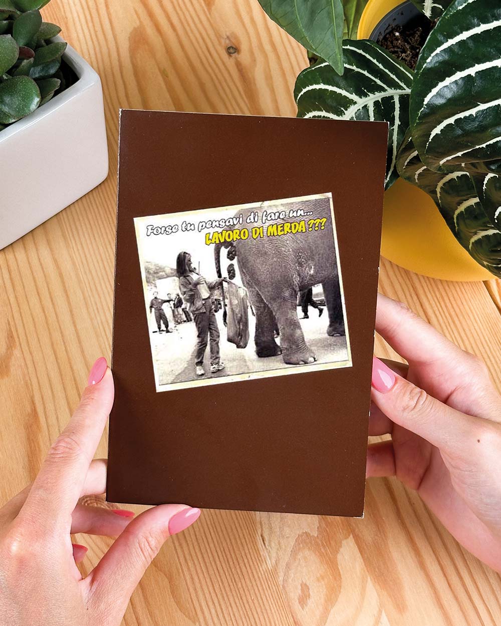 1. Design Divertente e Vintage: Il biglietto presenta un design vintage con colori seppiati e due foto, perfetto per aggiungere un tocco di nostalgia e ironia.