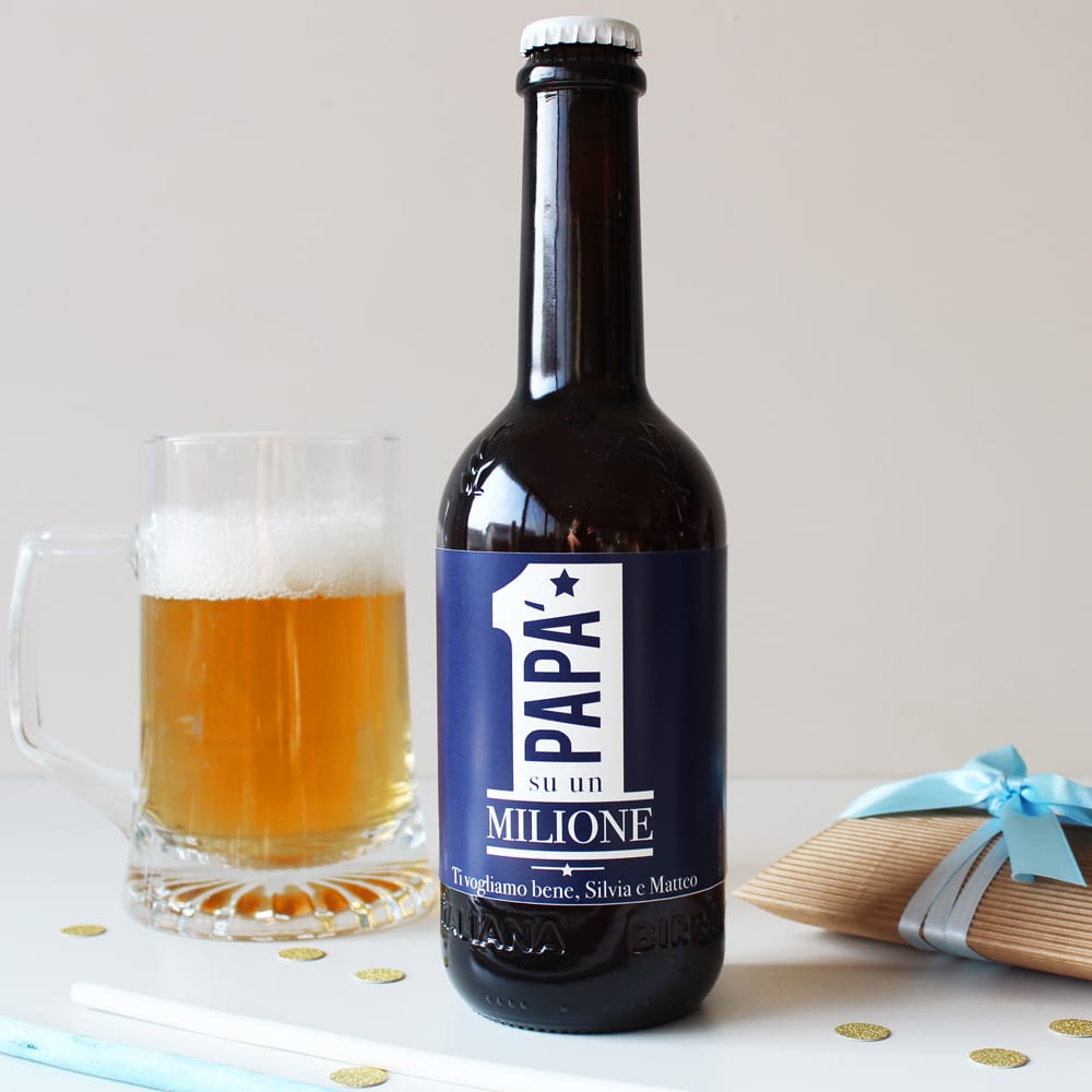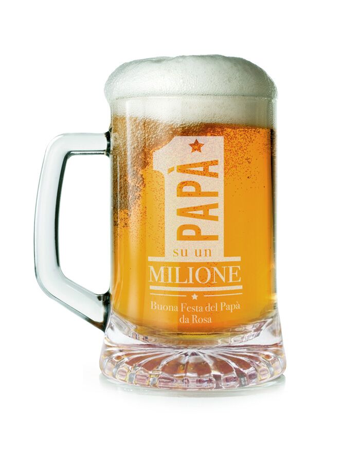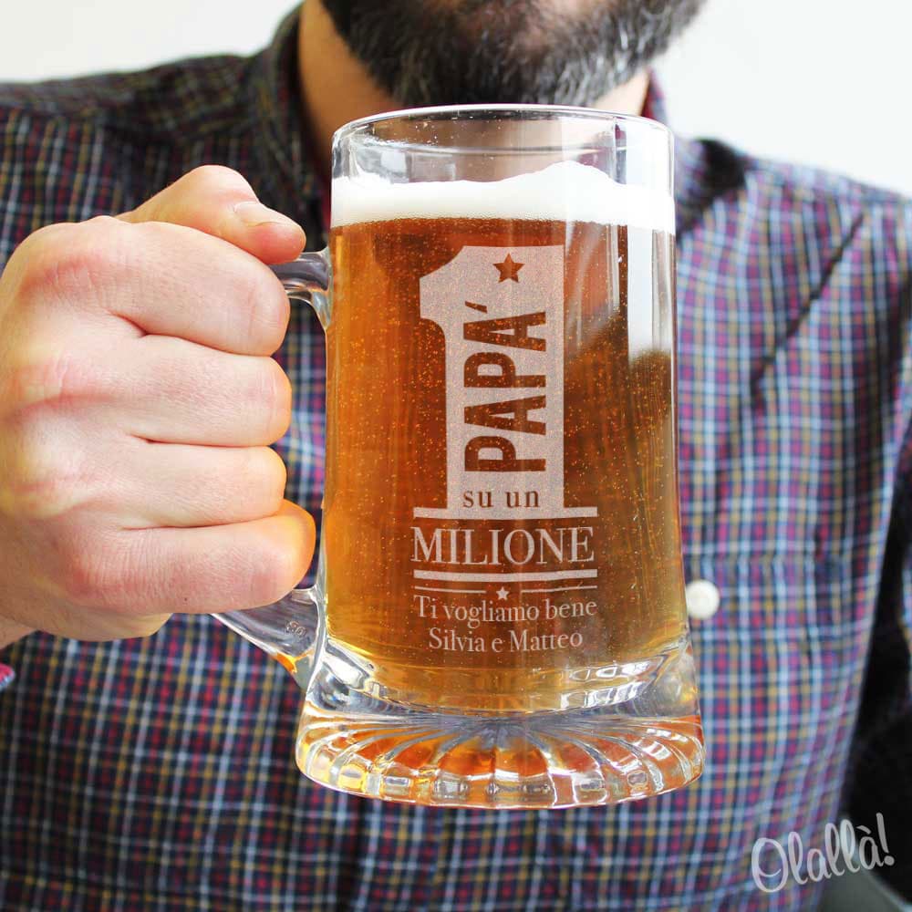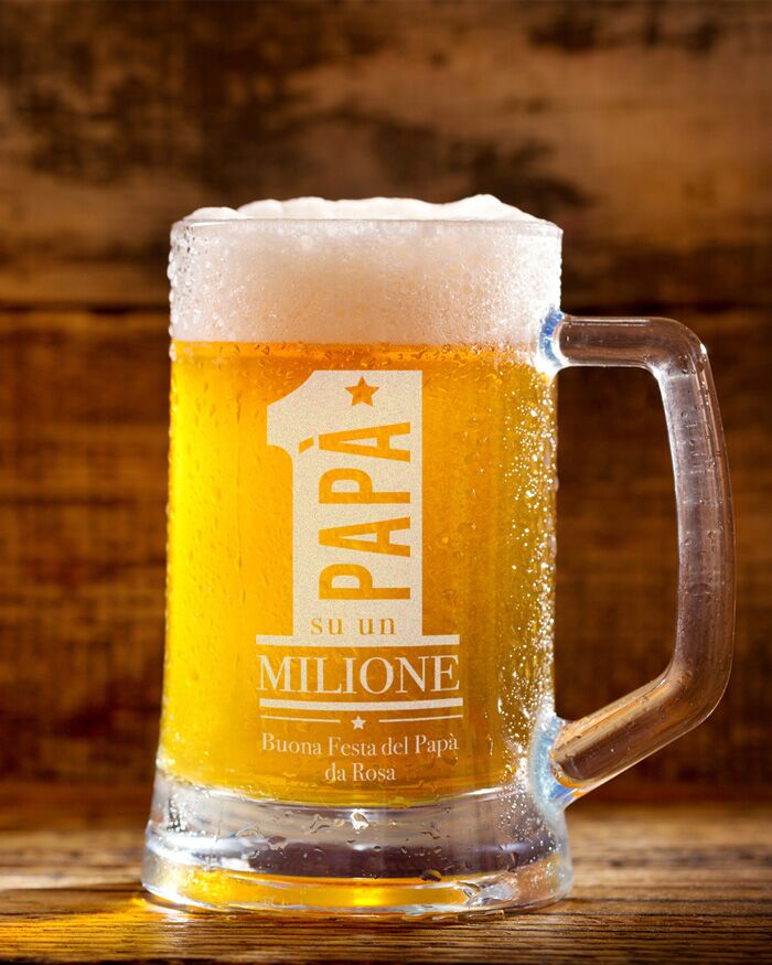 Splendido boccale da birra personalizzato “Papà su 1 milione” con dedica a scelta. Ideale per fare un regalo al vostro papà buongustaio appassionato di birra artigianale per la Festa del Papà. Ditegli quanto gli volete bene con questo regalo originale!