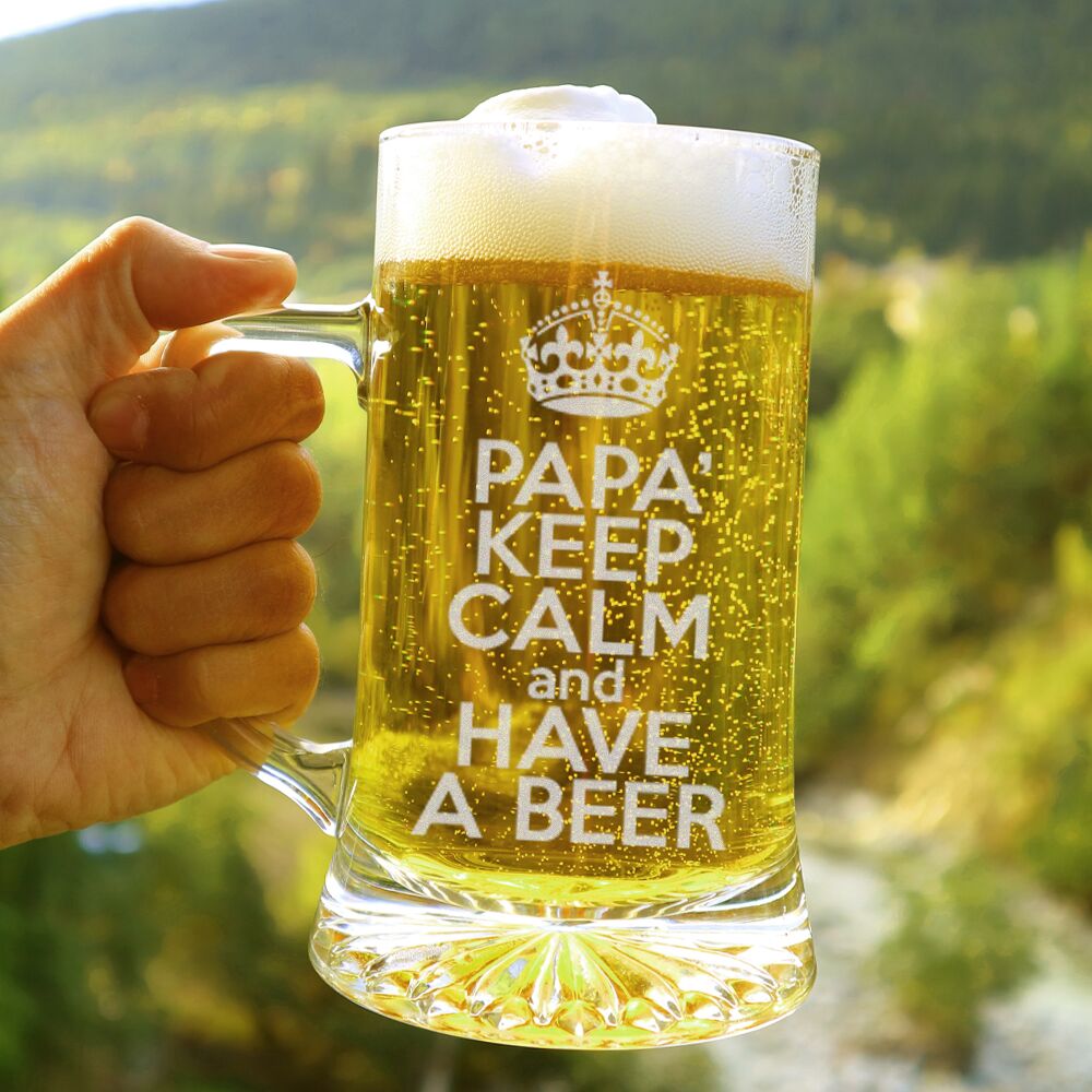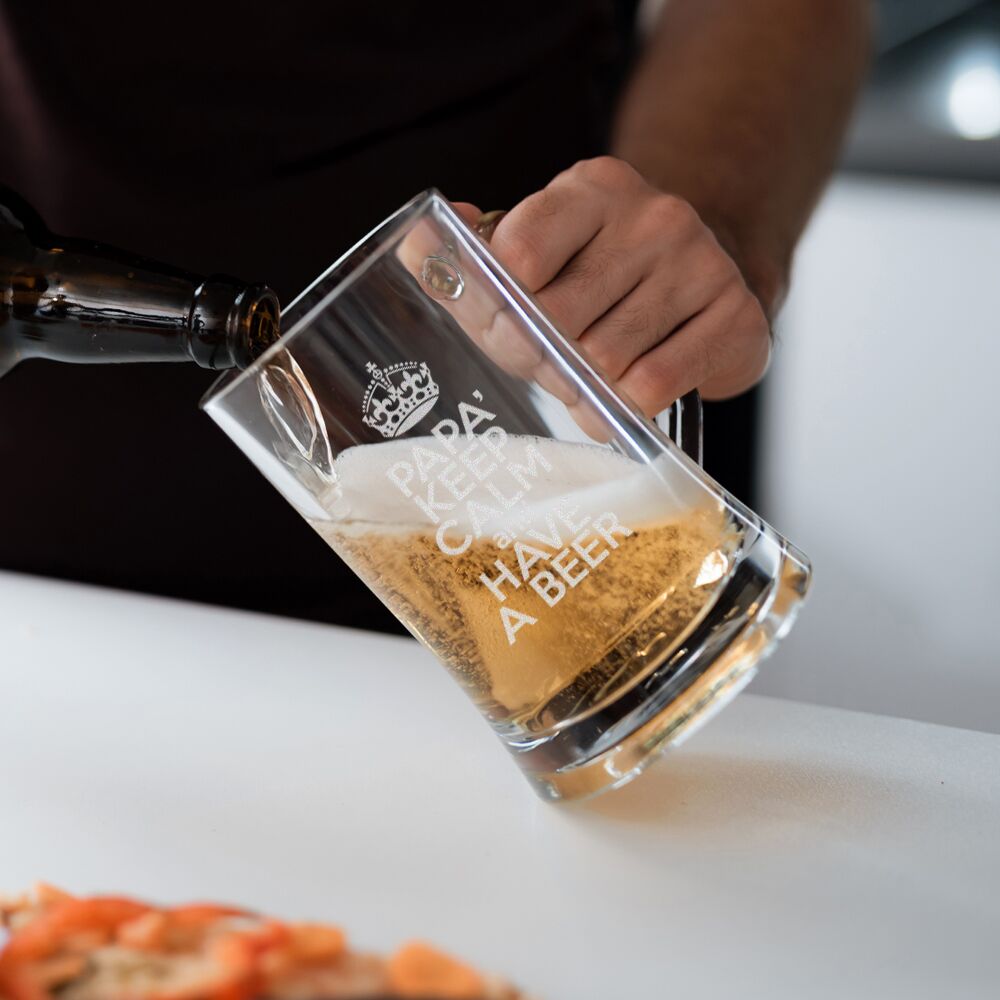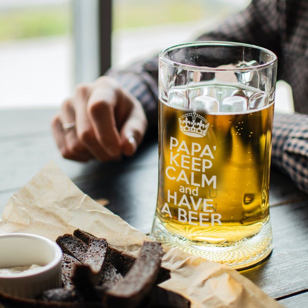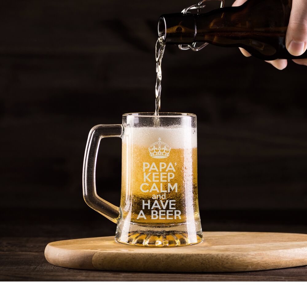 Splendido boccale da birra personalizzato “Papà Keep calm and have a beer”. Ideale per fare un regalo al papà appassionato di birra artigianale per la Festa del Papà. Dimostra il tuo affetto in modo totalmente originale!
