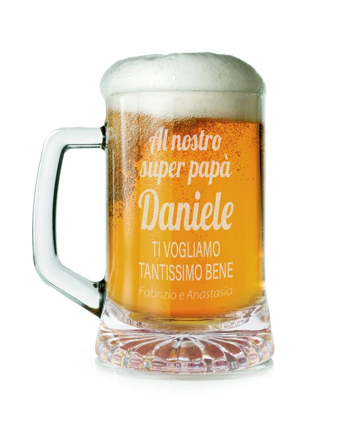 Boccale da birra personalizzato con la tua dedica speciale per il papà. Questo è un modo originale per fare gli auguri all’uomo più importante della tua vita nel giorno del suo compleanno o per la festa del papà… questo diventerà senza dubbio il suo boccale da birra preferito!