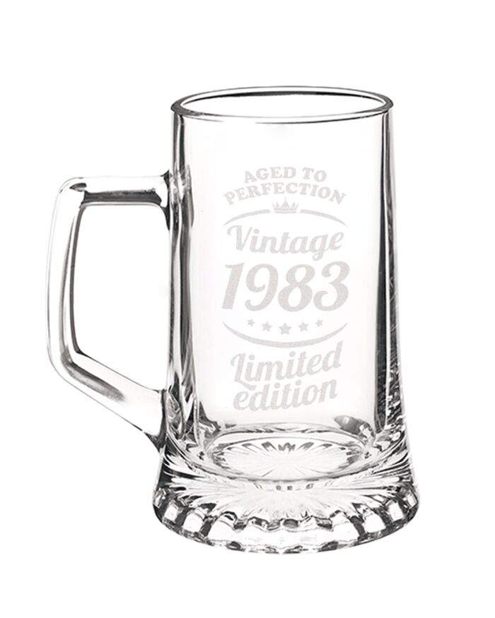 I bicchieri vengono incisi al laser. ATTENZIONE: la frase “Aged to Perfection. Vintage 1983. Limited Edition” rimane fissa e non è personalizzabile.