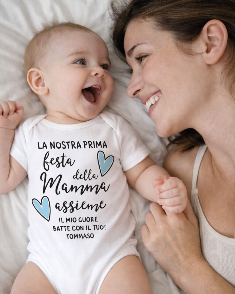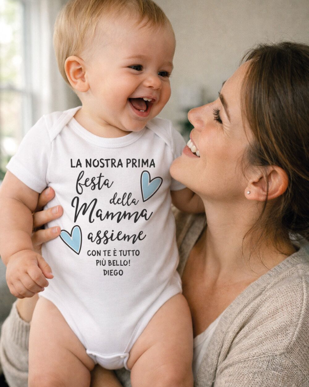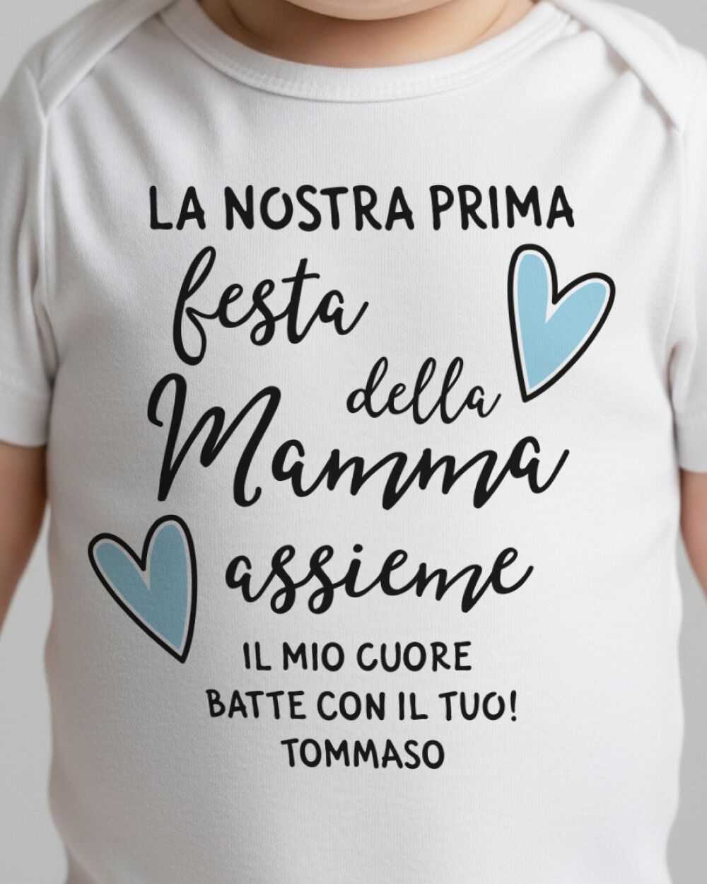 La prima Festa della Mamma è un momento che appartiene a entrambi: alla mamma che scopre un amore tutto nuovo, e al piccolo che ancora non sa di essere già il regalo più grande del mondo. Celebrare questo giorno con qualcosa di concreto, qualcosa che rimarrà — un body neonato personalizzato con il nome del bambino — è un gesto che va oltre il semplice dono. È un ricordo che si tocca, si indossa, si conserva.