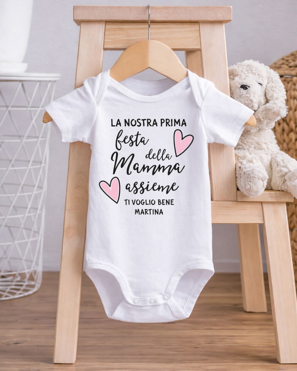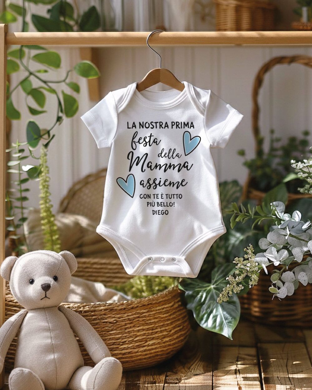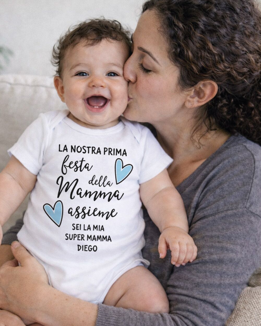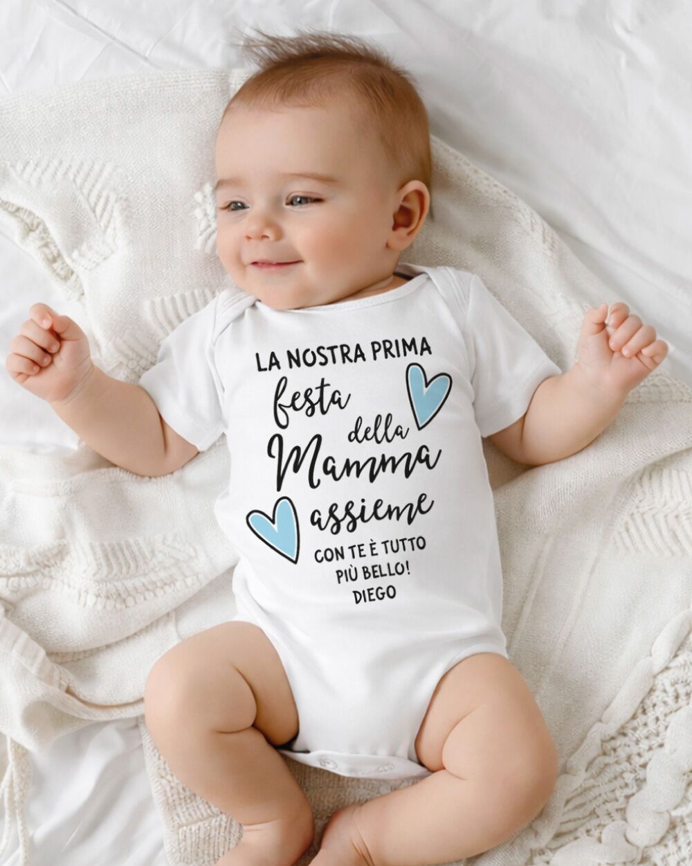 La prima Festa della Mamma è un momento che appartiene a entrambi: alla mamma che scopre un amore tutto nuovo, e al piccolo che ancora non sa di essere già il regalo più grande del mondo. Celebrare questo giorno con qualcosa di concreto, qualcosa che rimarrà — un body neonato personalizzato con il nome del bambino — è un gesto che va oltre il semplice dono. È un ricordo che si tocca, si indossa, si conserva.