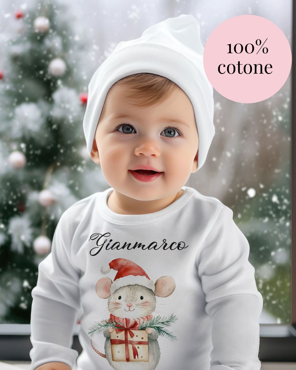 Cosa c’è di più magico del primo Natale di un neonato? Celebra questo momento speciale con un tocco di dolcezza e unicità grazie al nostro Body per Neonato Personalizzato con Nome e Illustrazione Animaletti Natalizi. Realizzato con amore e attenzione ai dettagli, questo body è l’idea regalo perfetta per neonati che si affacciano al loro primo Natale. Grazie alla possibilità di personalizzare il body con il nome del piccolo e una dolcissima illustrazione natalizia a tema animaletti del bosco, questo capo d’abbigliamento diventerà il ricordo perfetto di un momento indimenticabile.