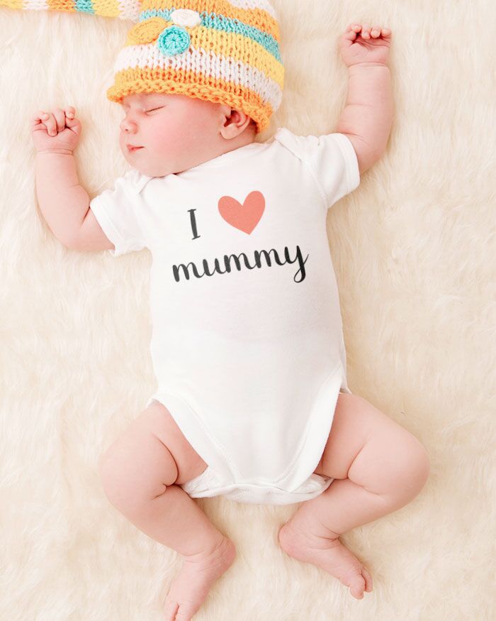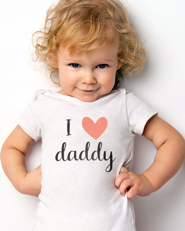 Body o T-shirt personalizzato con la frase a scelta tra “I love mummy” e “I love daddy”, con il cuoricino al posto della parola “love”.