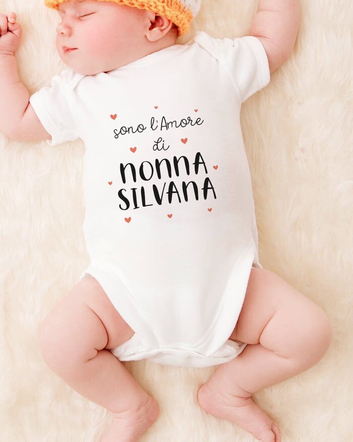 Body o T-shirt personalizzato con frase a scelta. Sarà un regalino che i vostri dolci nonni non potranno che apprezzare.