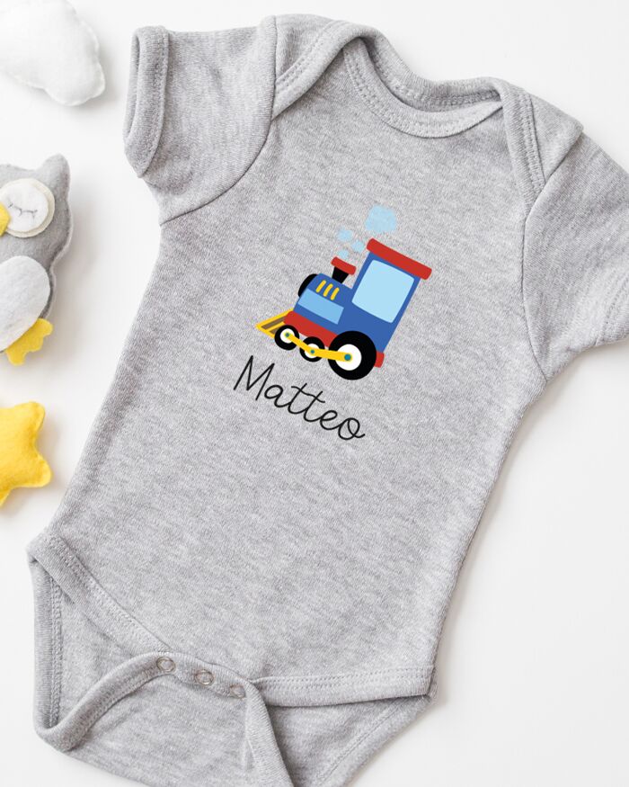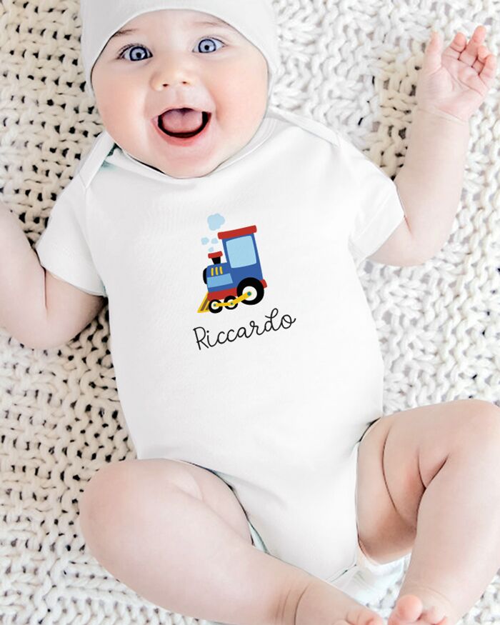 Body o T-shirt personalizzato con il nome e il disegno del camioncino. Il disegno non è personalizzabile.