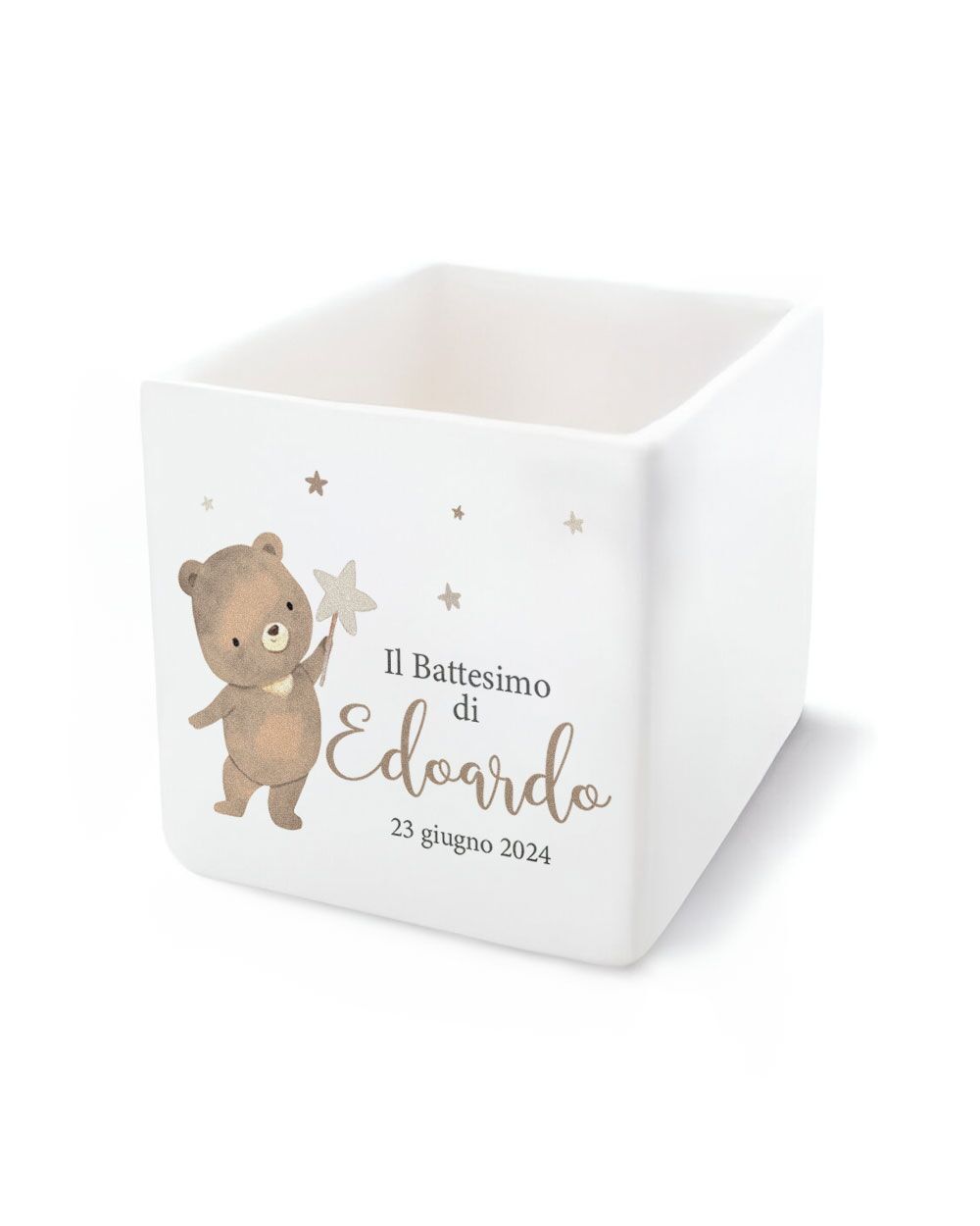 Se stai cercando un’idea originale, indimenticabile e affettuosa per il battesimo del tuo bambino, la nostra Bomboniera con Piante Grasse Succulente e Mini Cactus in Vasetto di Ceramica Bianco con Orsetto è la soluzione che ti proponiamo per celebrare questo momento speciale ed offrire, in aggiunta, anche un regalo duraturo e personalizzato per gli invitati al giorno di festa del tuo bimbo.