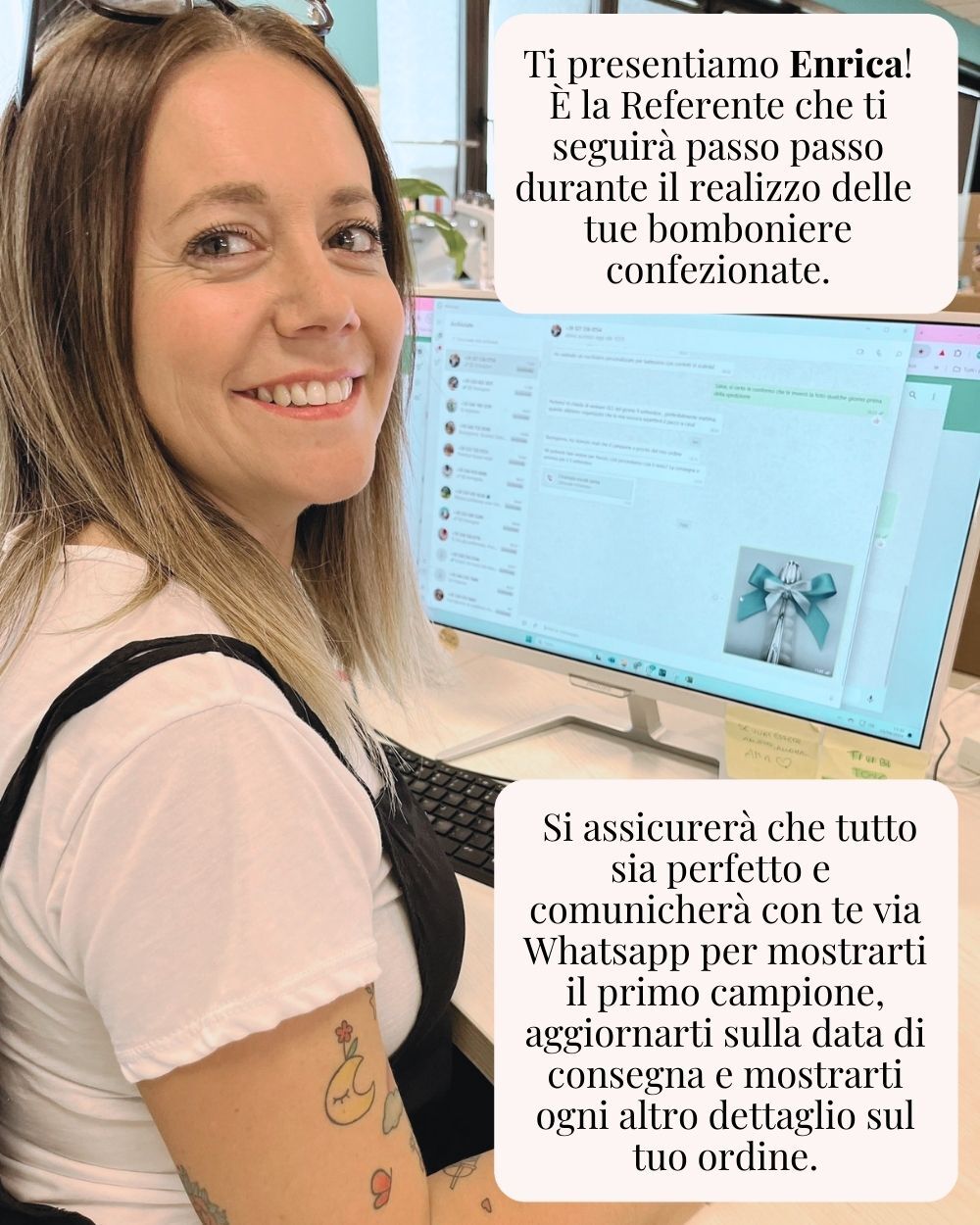 Dopo l’acquisto invieremo alla tua email l’immagine della personalizzazione realizzata sulla pallina. Se ti convince, procederemo al realizzo di un campione. Una volta pronto, verrai contattato via whatsapp, dove ti invieremo una foto del campione e ti chiederemo se è di tuo gradimento. Durante la conversazione con la referente per le tue bomboniere, potrai decidere piccoli cambiamenti e concordare assieme la data di consegna che desideri. Mano a mano, la referente ti informerà di tutti i passaggi del realizzo. Una volta che il pacco è pronto, riceverai una serie di email che ti terranno costantemente informato sullo stato della spedizione.