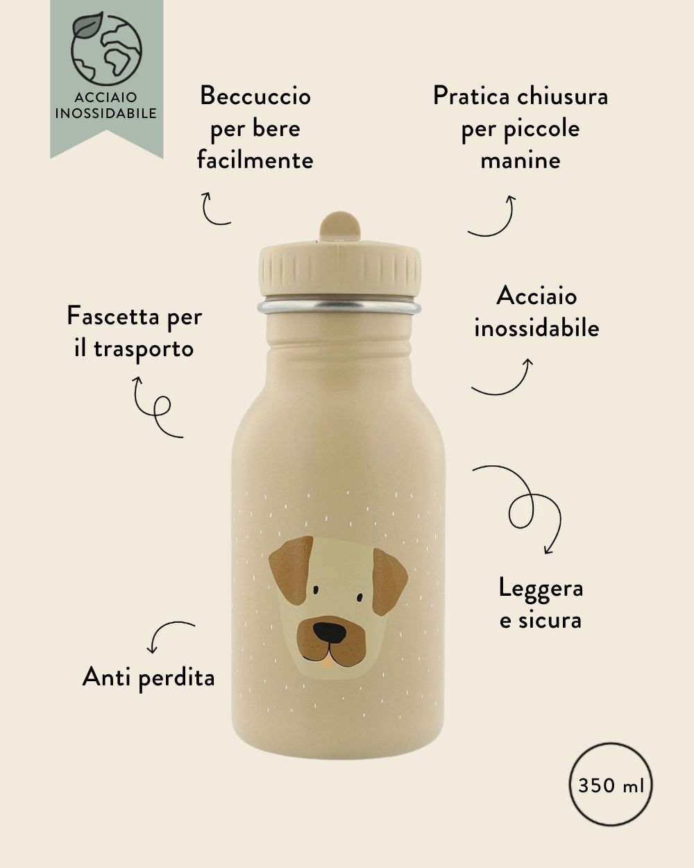 - Mr Dog Diventa un Compagno Fidato: Il design con il simpatico cane Mr Dog rende questa borraccia facilmente riconoscibile per i bambini, evitando confusione o scambi con quelle dei compagni di scuola.