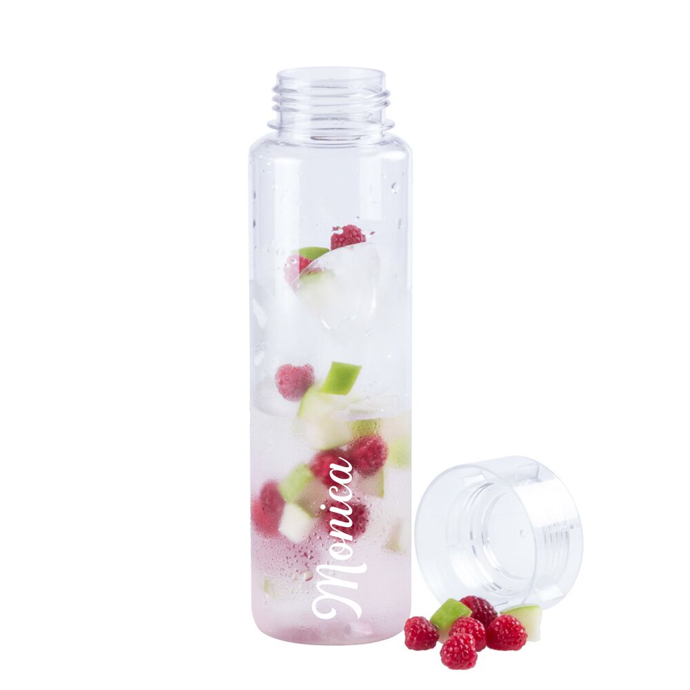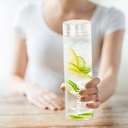 Bellissima Borraccia in Plastica trasparente, personalizzabile con il nome che desideri! Una borraccia molto capiente, perfetta per gli sportivi che cercano una soluzione per reidratarsi durante l’allenamento oppure per affrontare il sole delle giornate al mare.