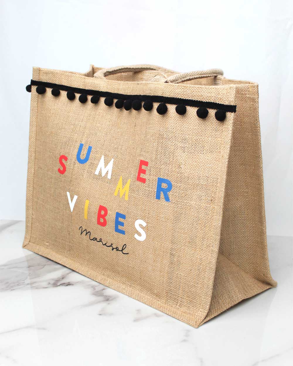 Borsa in Juta con Pon Pon “Summer Vibes” Personalizzabile con Nome – Idea Regalo Estate