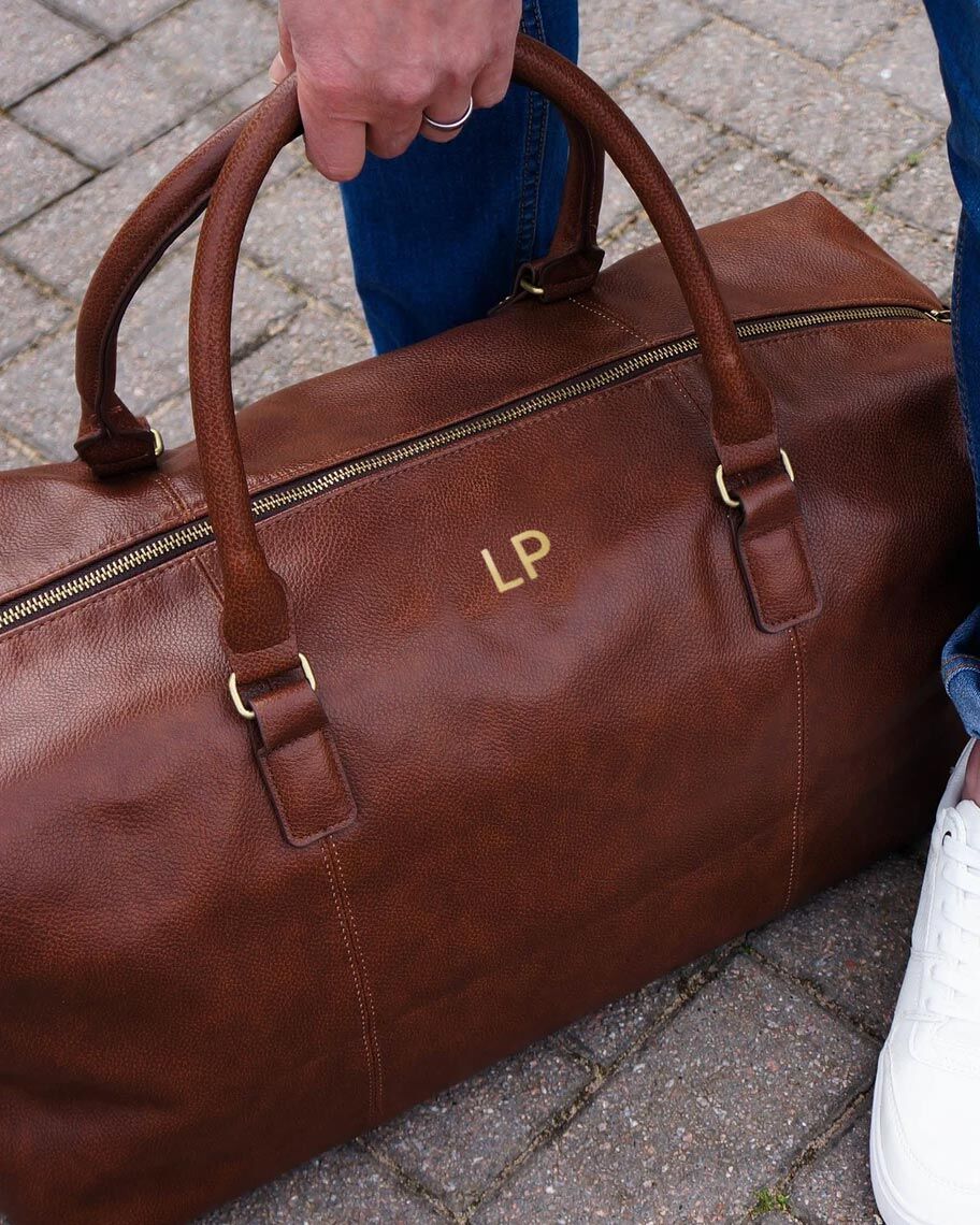 Raffinato Borsone in Ecopelle Marrone personalizzato con iniziali, ideale come regalo laurea per lui.