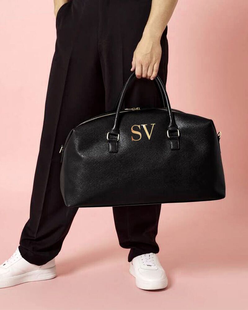 Elegante Borsone in ecopelle saffiano personalizzato con le tue iniziali nei colori oro, rose gold o argento a scelta. Disponibile in 3 meravigliosi colori, sarà il compagno d’elezione per i viaggi fuori porta. Questo borsone dalla linea raffinata è un regalo perfetto per l’amica che ama viaggiare, o per chi deve affrontare spesso brevi trasferte di lavoro e cerca un borsone capiente, ma senza rinunciare allo stile.