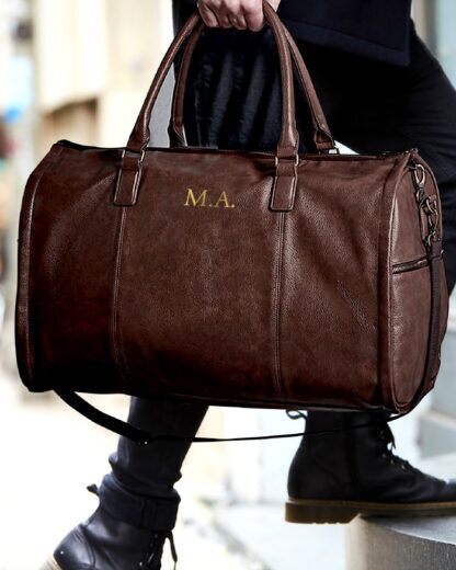 Elegante Borsone in Ecopelle Marrone Porta Abito con tracolla edibile o a spalla, personalizzato con le iniziali che desideri color oro per uno stile mozzafiato!