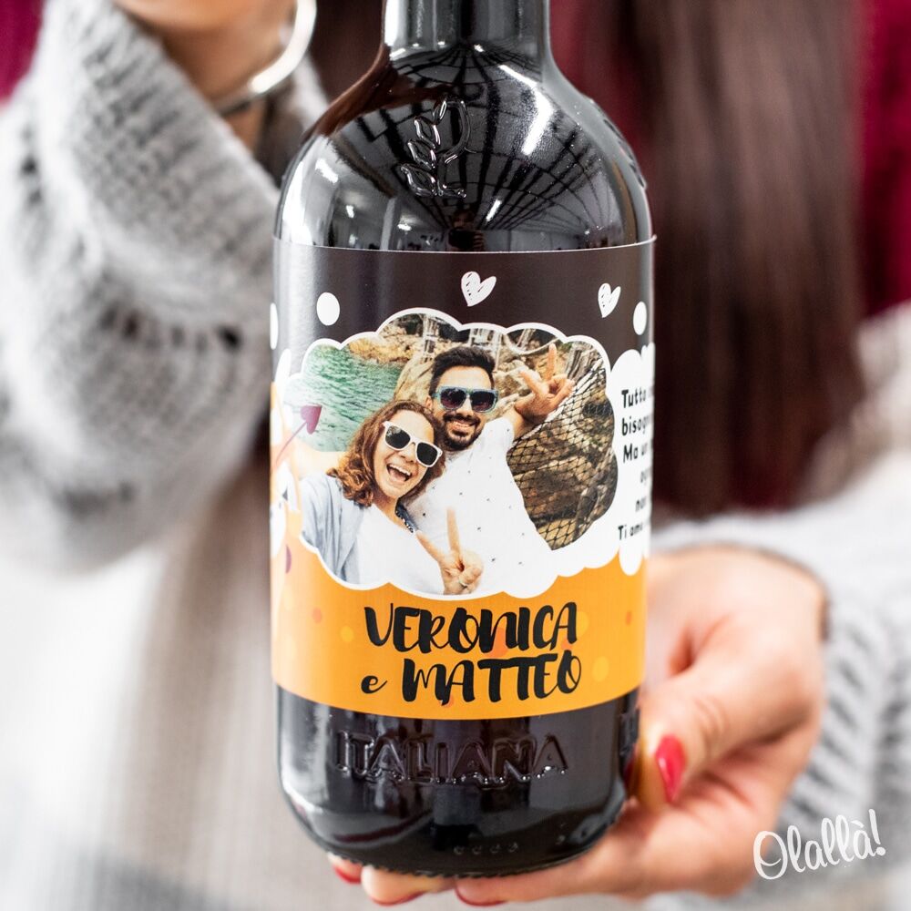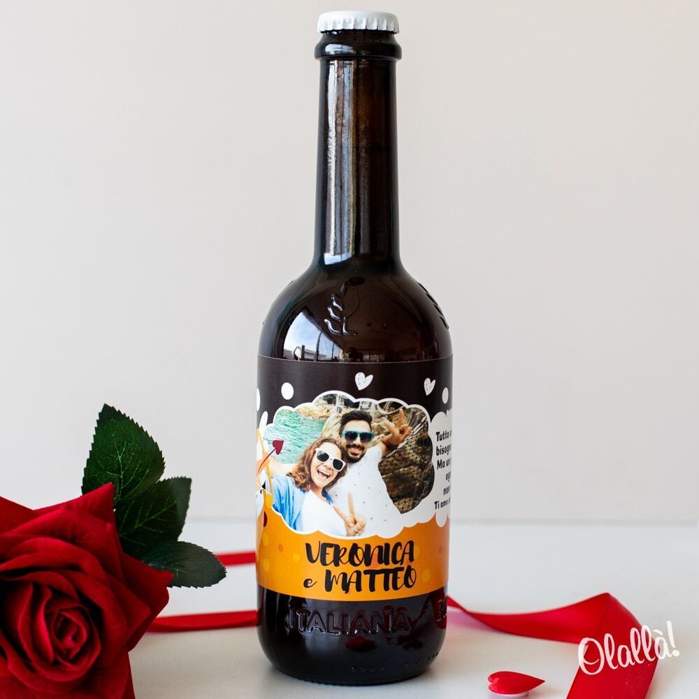 Bottiglia di birra artigianale personalizzabile con nomi, foto e dedica. Per il tuo o la tua beerlover, non troverai regalo più adatto da fare a San Valentino o per un simpatico anniversario!