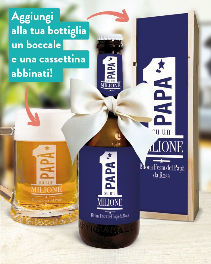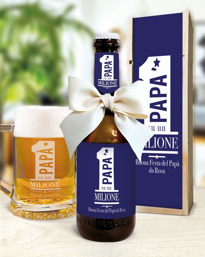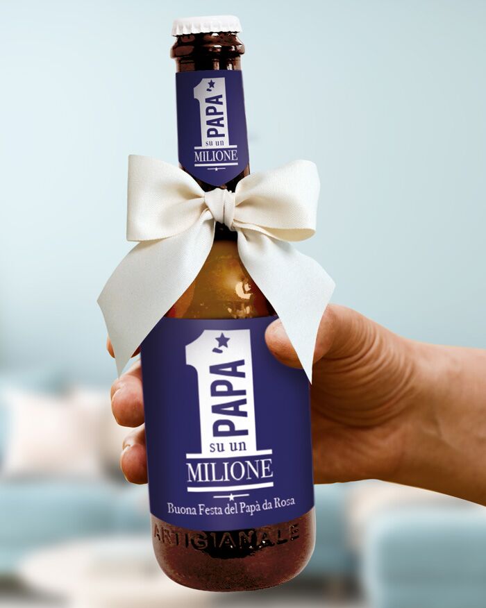 - UNA RINFRESCANTE BOTTIGLIA DI BIRRA PERSONALIZZATA: non è la solita bottiglia di birra! La magia di questa bottiglia di birra è proprio la sua personalizzazione. Puoi donare al tuo papà una bottiglia personalizzata inimitabile, per veri numeri uno! Insomma, una bottiglia di birra personalizzata fatta apposta per lui.