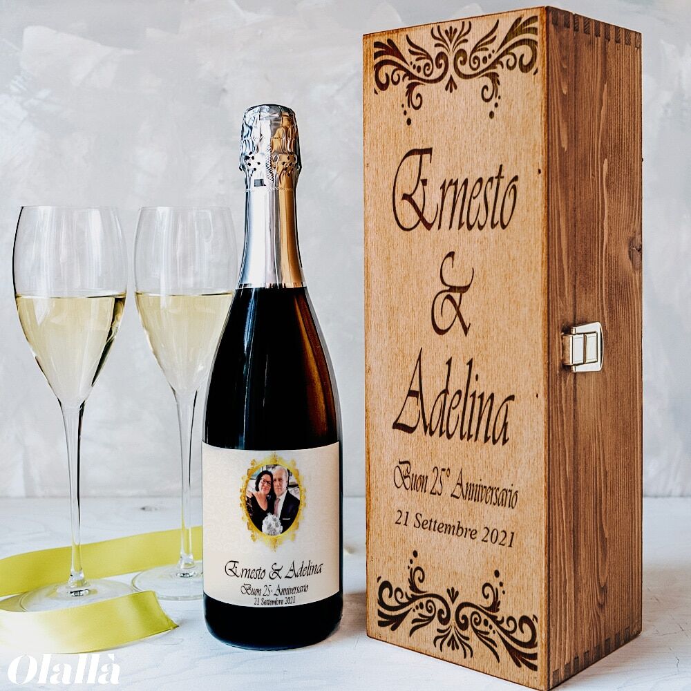 Personalizza la tua bottiglia compilando quanto ti viene richiesto nei campi del menù prima di aggiungerla al carrello. L’etichetta personalizzata viene stampata su carta di alta qualità.