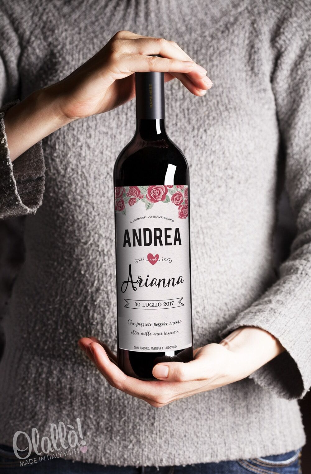 Queste bottiglie personalizzate sono un regalo perfetto per tutti gli amanti del bere bene, ed un complemento eccezionale per rendere ogni festa davvero unica! I nostri grafici sono sempre a vostra disposizione per creare etichette su misura per il vostro evento o occasione importante. Vuoi fare un grande ordine? Contattaci per maggiori informazioni a servizioclienti@olalla.it per conoscere i nostri sconti sui grandi acquisti.