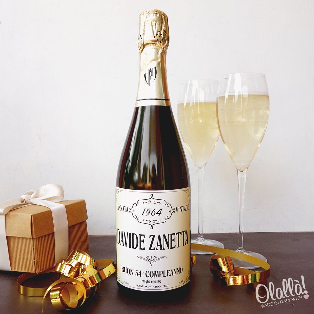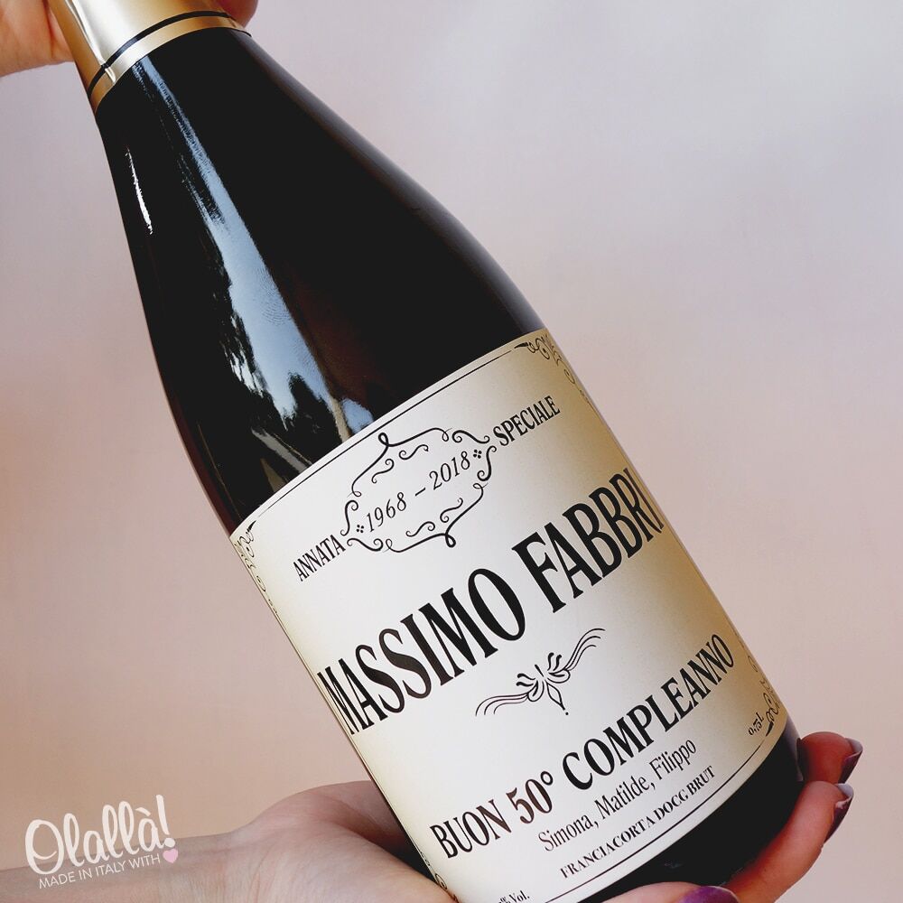 1. Etichetta Personalizzata: Rendi omaggio all’annata del festeggiato con un’etichetta che porta i suoi anni e il suo nome, trasformando così ogni bottiglia in un pezzo unico.