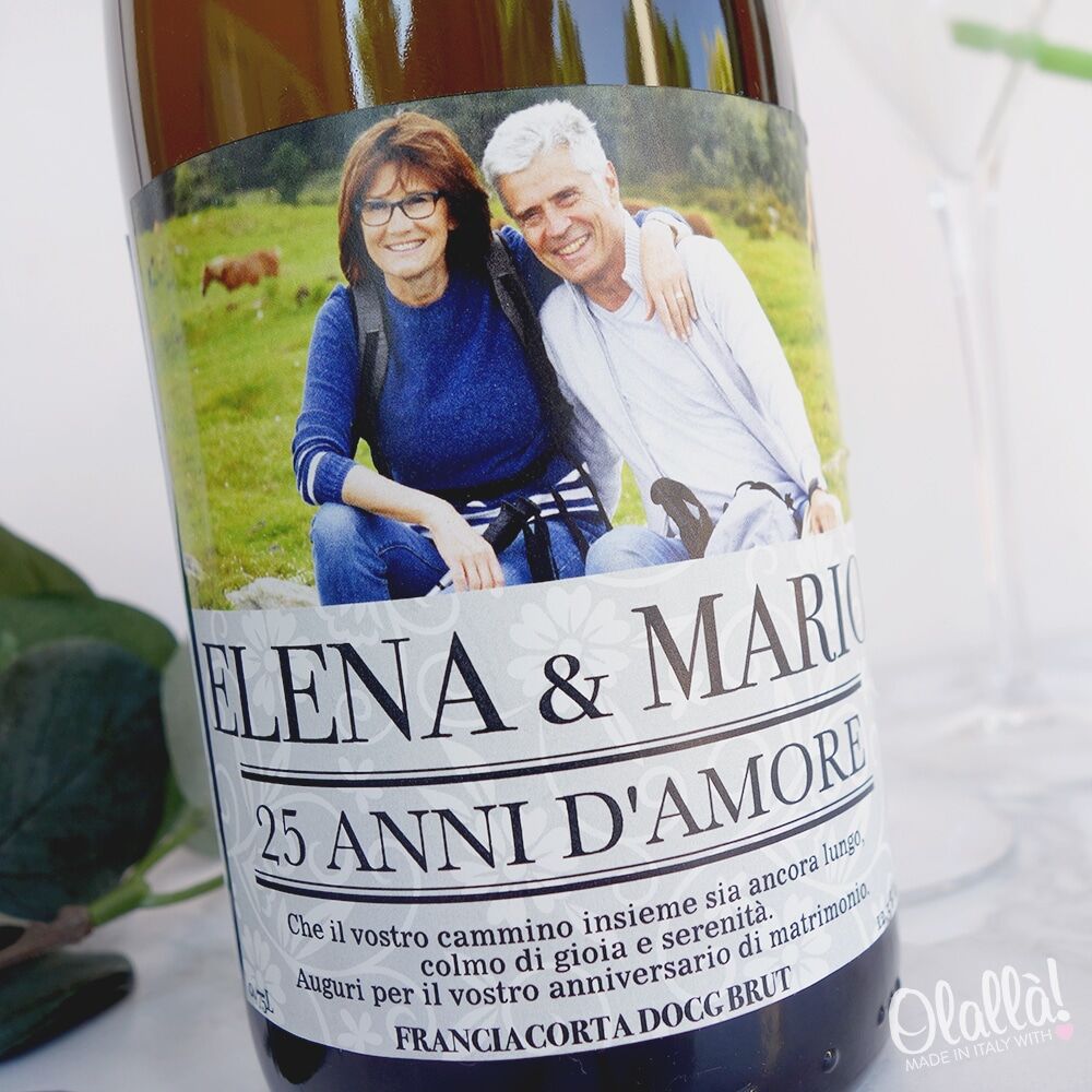 Lusso, design e buon spumante si combinano assieme in questa magnifica bottiglia magnum personalizzata, ideale come regalo di anniversario per il vostro caro appassionato di buon vino. La bottiglia contiene un eccellente vino bianco spumante extra dry, prodotto in Romagna.