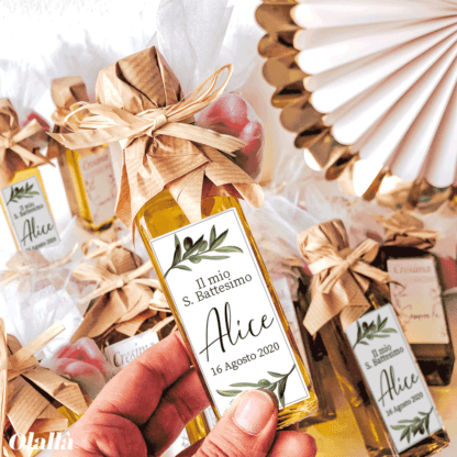 6 recensioni per Bottiglietta di Olio Extra Vergine d’Oliva Italiano, con Etichetta Personalizzata – Idea per Bomboniera Battesimo