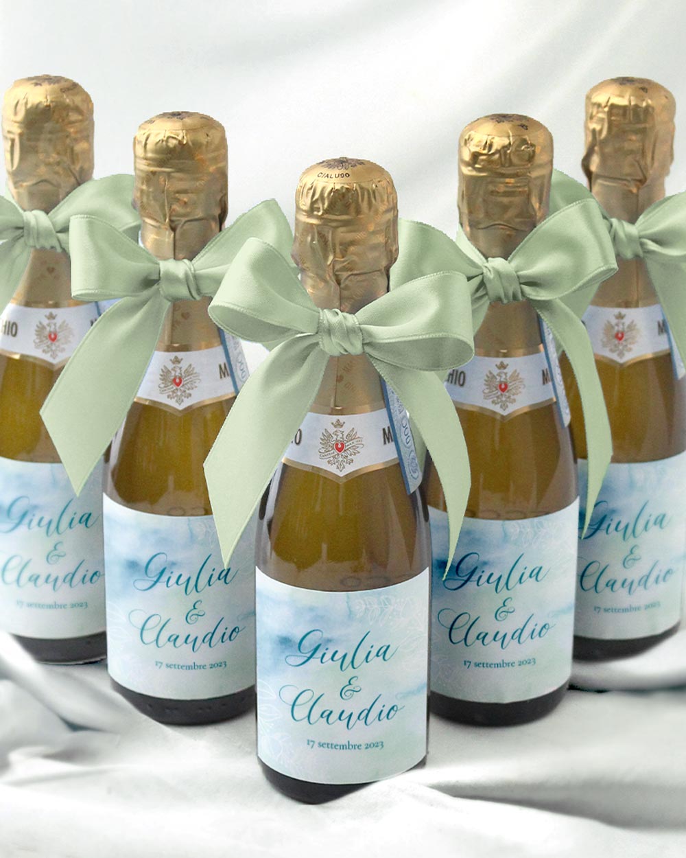 Bottigliette Mignon di Prosecco a Tema Acquerellato con Nomi – L’Idea Bomboniera Perfetta per Matrimoni e Anniversari